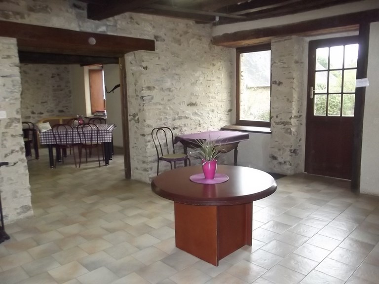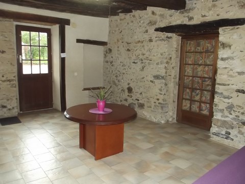 Ouverture sur le salon détente avec cheminée. Accès exterrieur vers la cour