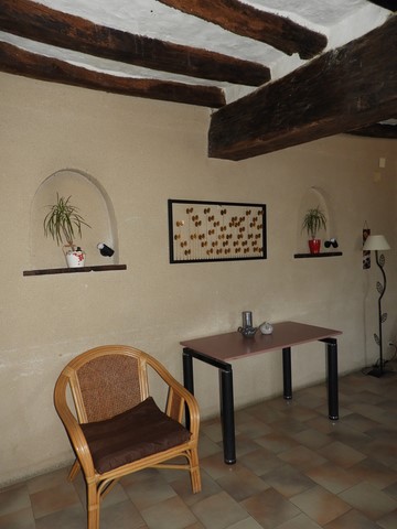 Salon de 30m² avec un accès à la cuisine ainsi qu'une sortie vers l'exterrieur ( salon de jardin, barbecue...)